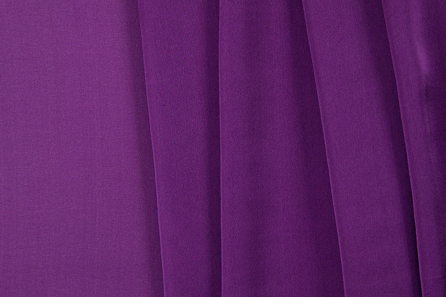 A semi-sheer silk chiffon, in rich purple plum, and with a delightful satin finish. Soft, drapey, and ethereal, silk chiffon makes a graceful evening shawl, elegant scarf, or feminine dress. 100% silk. 60" wide.