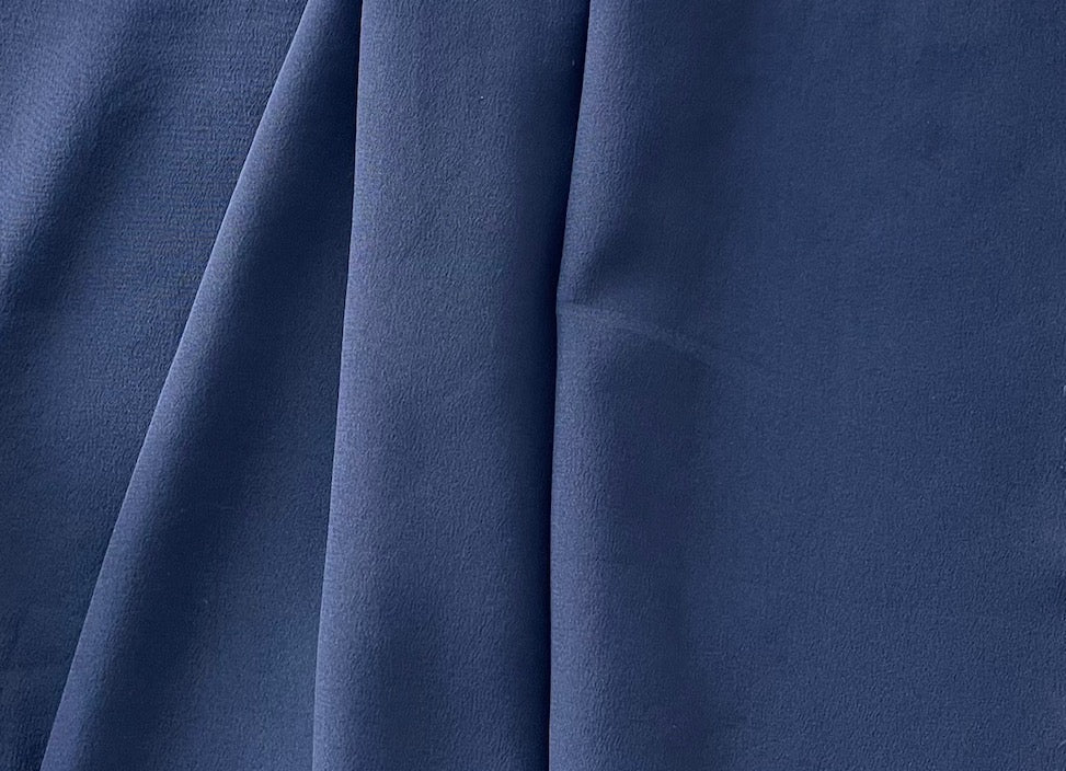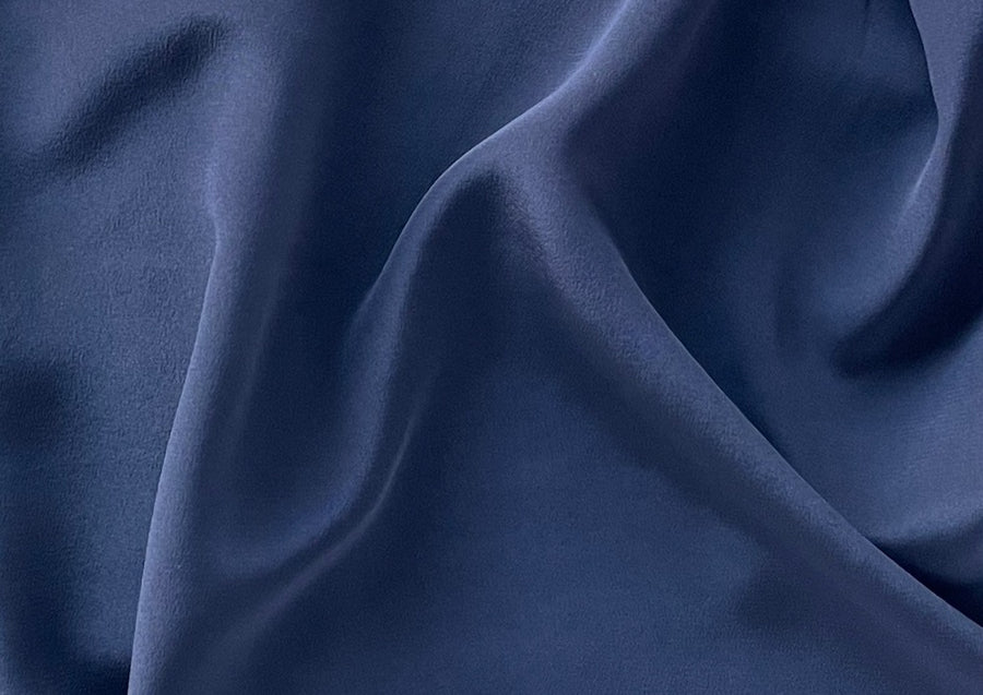 A silk crepe de chine in deep purple-tinged indigo - this soft, fluid, and elegant silk is perfect for chic pajama pants, lingerie, wafty wraps, blouses, or luxurious linings. Made in Italy. 100% silk. 53" wide.