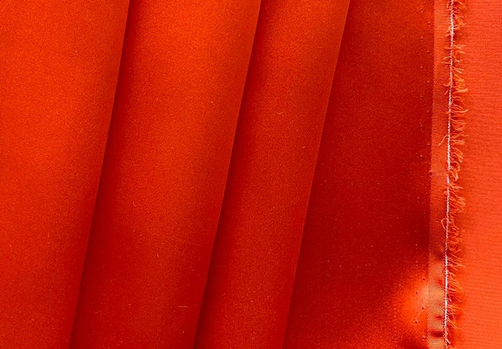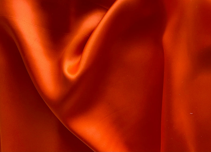 A silk satin charmeuse in tangelo tango orange - this elegant, fluid silk is perfect for comfort and fit! Create a blouse, a dress, lingerie, lining, or a tunic. Made in Italy. 100% silk. 54" wide.