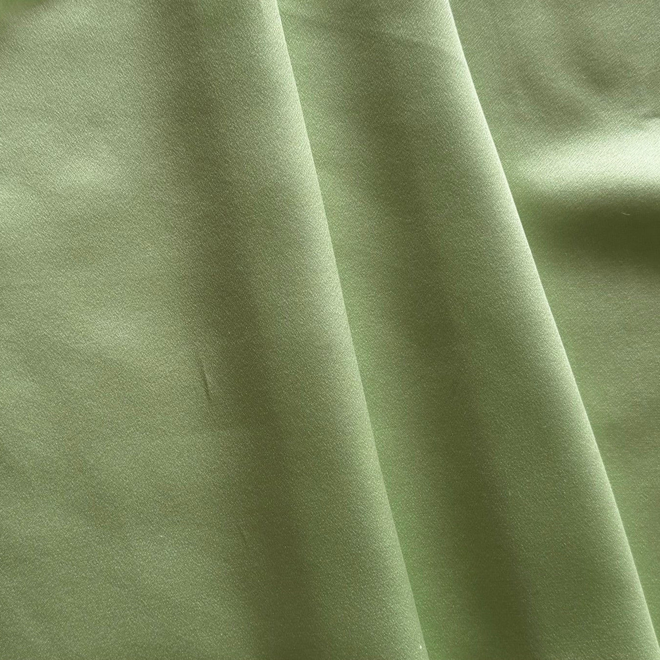 A luxurious 30 mumme, 3-ply silk satin charmeuse in a cool shade of tea green - this high-end charmeuse is a little heavier and perfect for tops, dresses, and flowing pants. Made in Korea. 100% silk. 45" wide.
