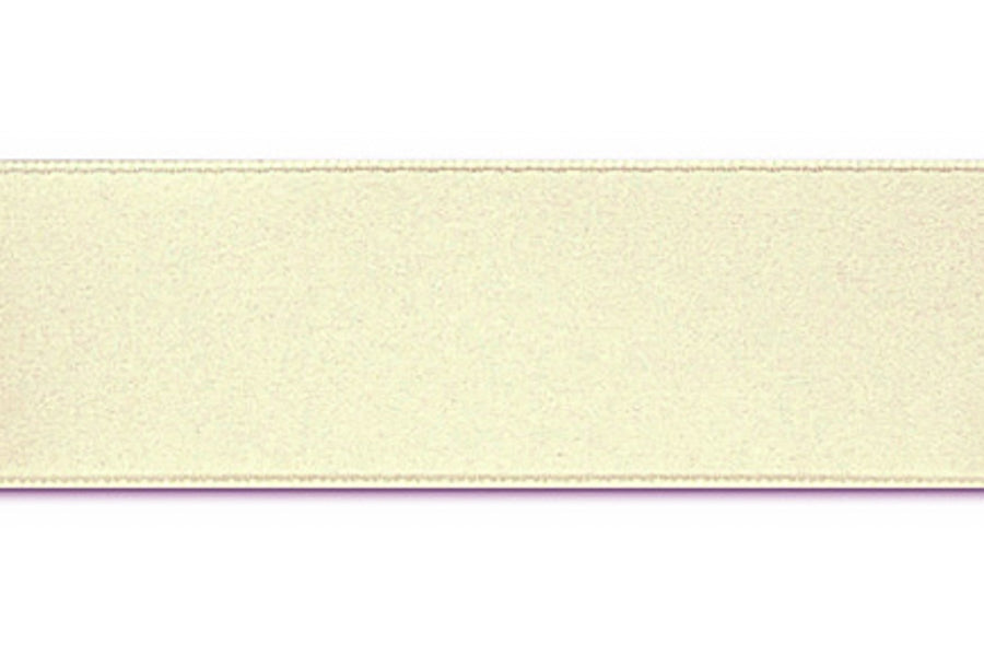 Silk satin ribbon in butter yellow. This double-faced, 100% silk satin ribbon is a luxurious ribbon that is ideal for bridal and wedding wear, heirloom sewing, or haute couture. It is supple, with a soft hand, a beautiful luster, and a woven edge. Hand wash.