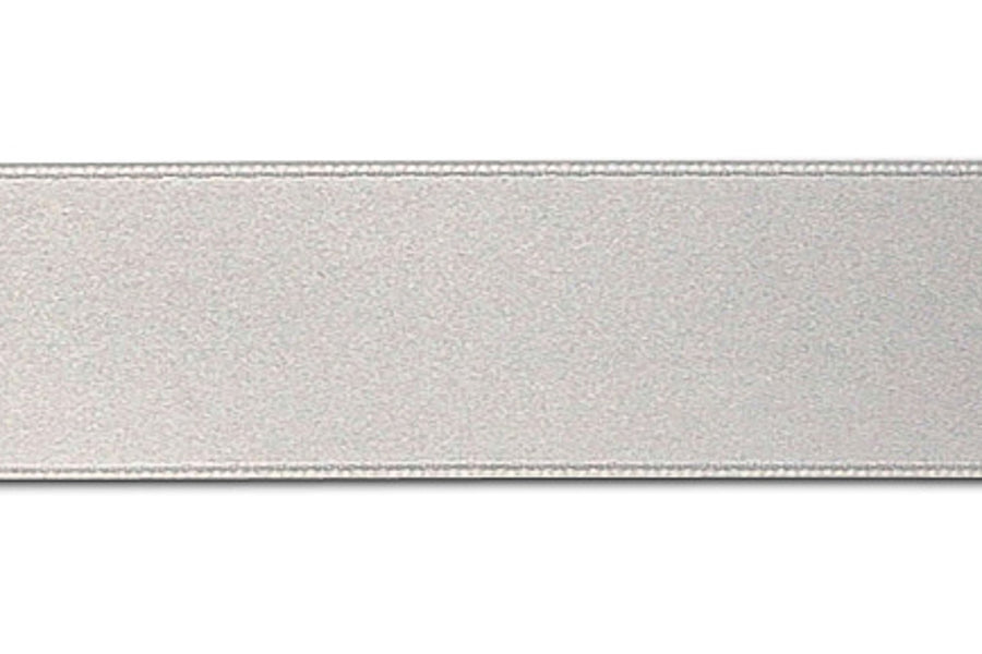 Silk satin ribbon in Silver Grey. This double faced, 100% silk satin ribbon is a luxurious ribbon that is ideal for bridal and wedding wear, heirloom sewing, or haute couture. It is supple, with a soft hand, a beautiful luster, and a woven edge. Hand wash.