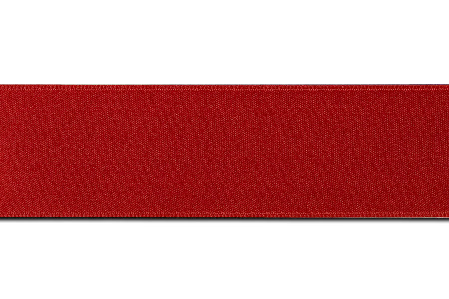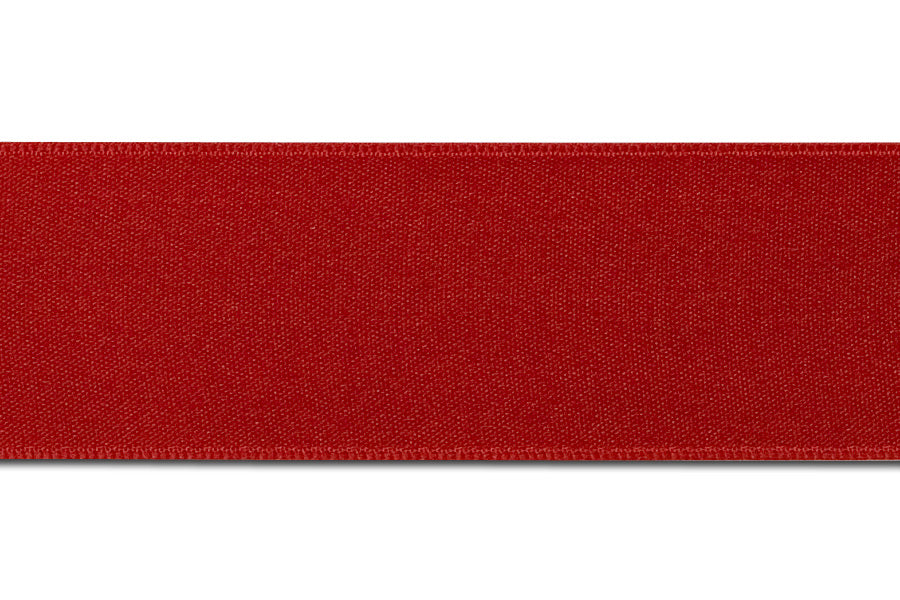 Silk satin ribbon in tomato red. This double-faced, 100% silk satin ribbon is a luxurious ribbon that is ideal for bridal and wedding wear, heirloom sewing, or haute couture. It is supple, with a soft hand, a beautiful luster, and a woven edge. Hand wash.