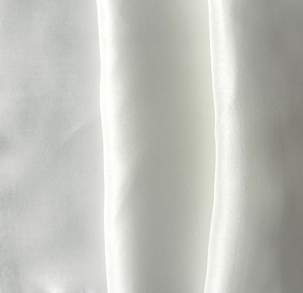A light to mid-weight silk crepe de chine in PFD off-white - this soft, fluid silk has a little body and is dyable, perfect for lingerie, blouses, or luxurious linings. Made in Italy. 100% silk. 59" wide.