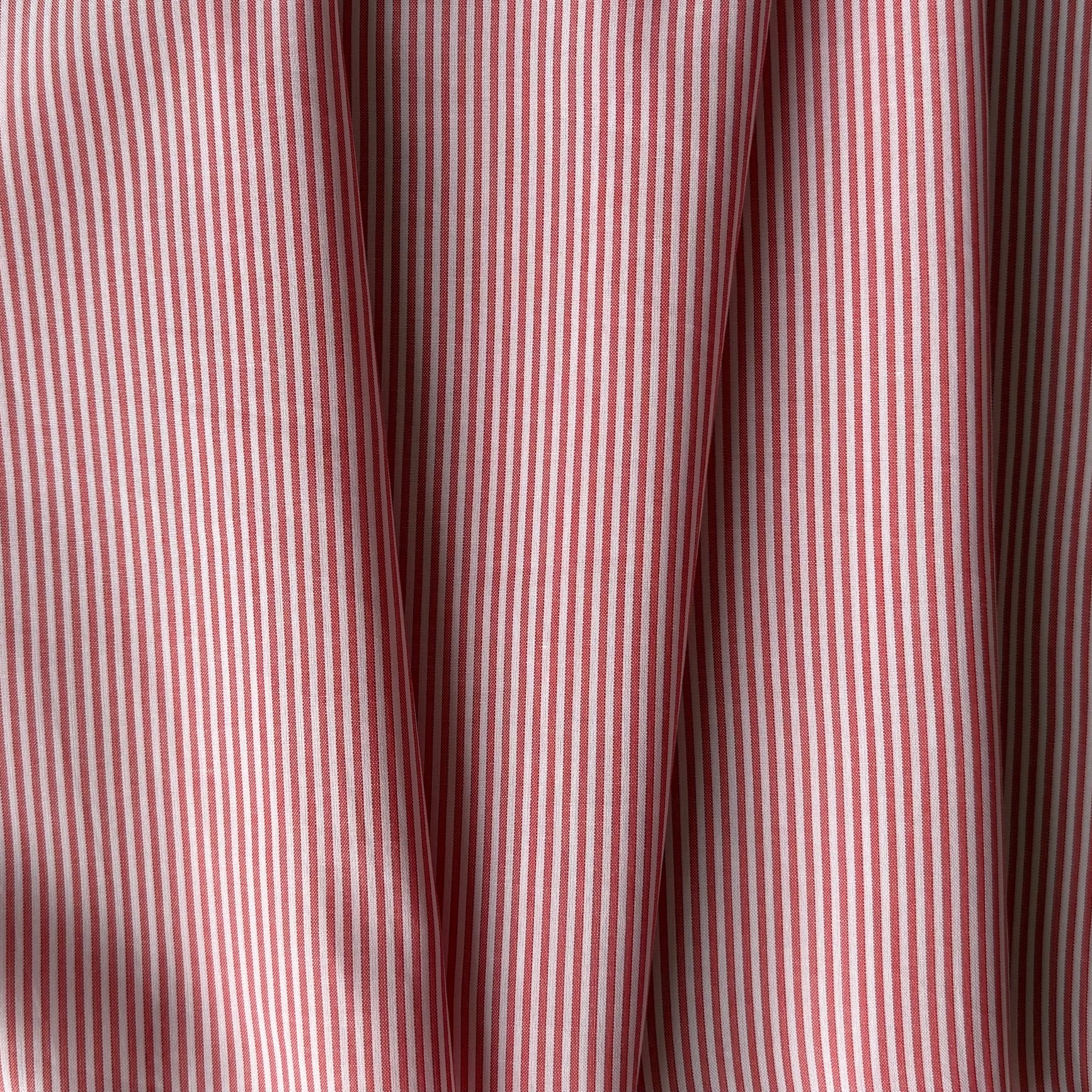 A lighter-weight cotton shirting in lengthwise red and white candy stripes - this smooth cotton is perfect for a blouse, nightwear, or a shirt. Made in Japan. 100% cotton. 59" wide.