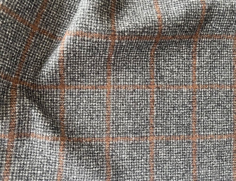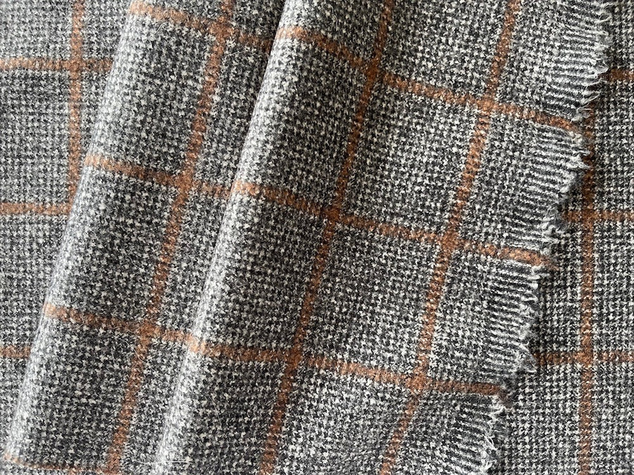 A buttery soft wool flannel 2" check in shades of charcoal, white, and tobacco brown - this high-end, handsome flannel is perfect for a blazer, slacks, suits, or a vintage-style tailored dress. Made in Italy by Etro. 100% wool. 58" wide.