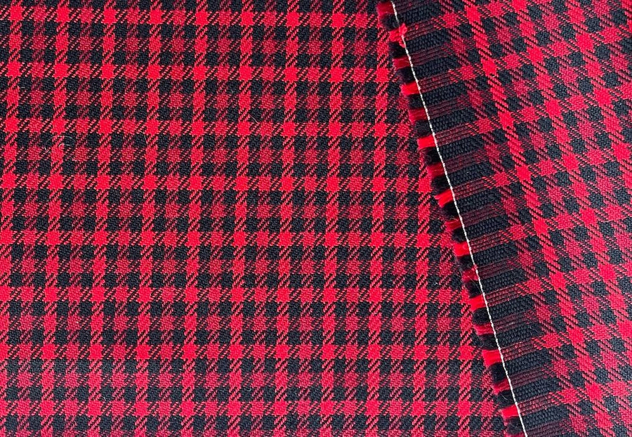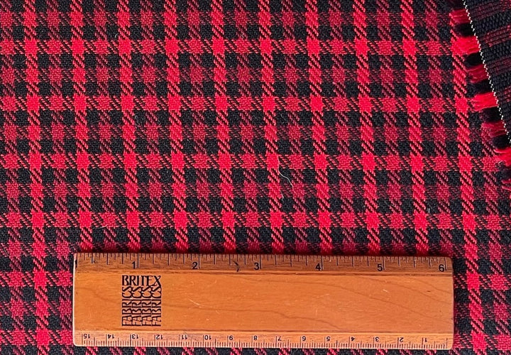 A couture mid-weight wool twill coating in a jaunty cherry and black check - this handsome coating is great for fine tailoring and perfect for an overcoat, a suit, a pea-coat, or a wrap coat. 100% wool. Made in Italy for Balenciaga. 60" wide.