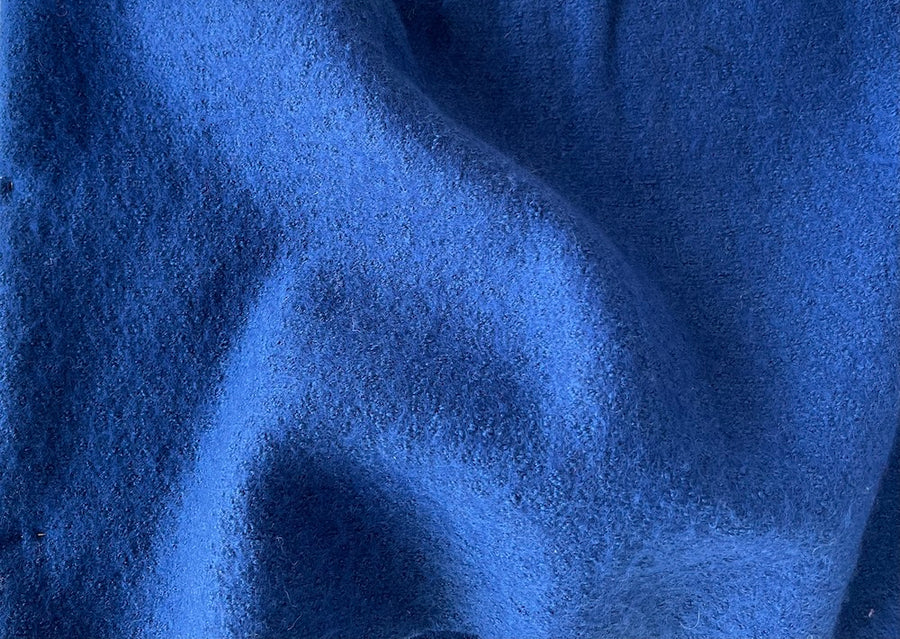 A mid-weight boiled wool blend coating in light ultramarine blue. It’s difficult to find such perfect boiled wool, and in such a luscious color! Excellent for a sporty jacket, a vest, or tunic. Made in Germany. 90% wool and 10% polyester blend. 49" wide.