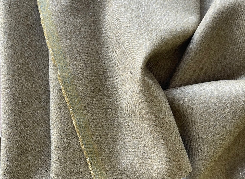 A mid-weight virgin wool flannel in a subtle heathered curried sand - this tightly woven, lightly brushed wool flannel is perfect for a cozy shirt, pants, tunics, or jackets. Made in Italy. 100% wool. 62" wide.