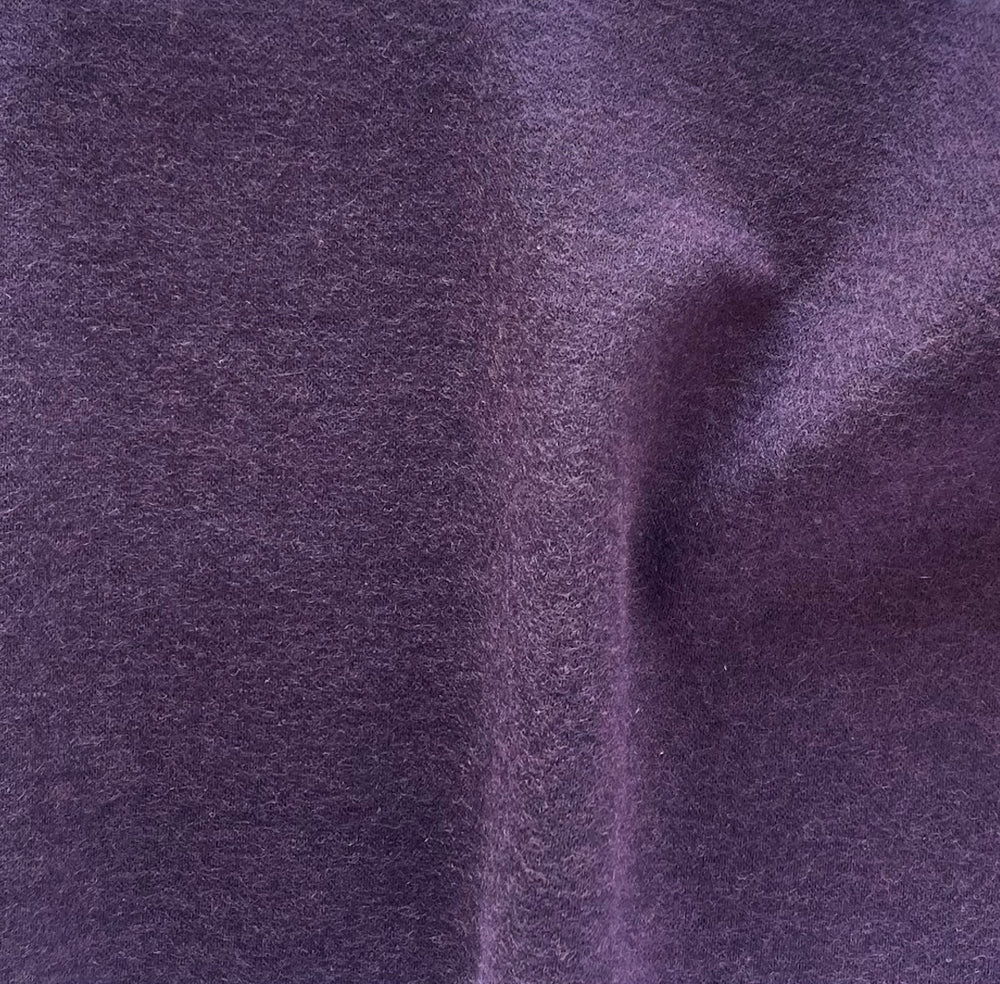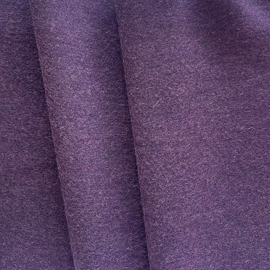 A high-end wool jersey in mottled deep thistle - this smooth and soft knit is the perfect weight for comfortable culottes, pants, jumpers, and jackets. Made in Italy by Dondi. 100% wool. 59" wide.