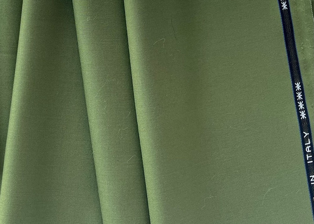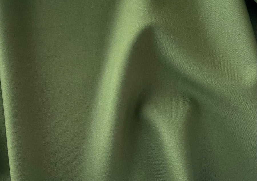 Our favorite high-end, mid-weight selvedged stretch wool twill in cool spring glade green - with a touch of lycra for comfort, this smooth, tightly-woven woolen can be used either on the smooth side or the twill side, and is perfect for travel garments, tunics, culottes, and slacks. Made in Italy. 97% wool and 3% lycra blend. 60" wide.