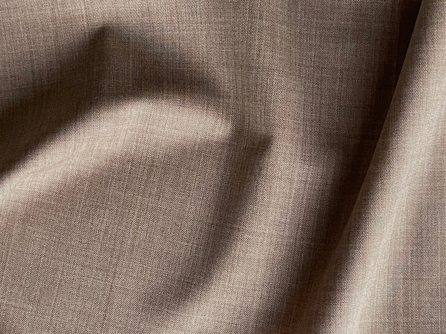 A lighter-weight, Super 130s stretch wool twill in heathered tawny mushroom - with a touch of lycra, this high-end wool is perfect for jackets, blazers, skirts, tunics, and slacks. Wool and lycra blend. 60" wide.