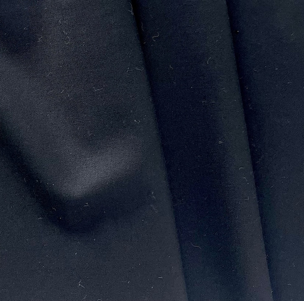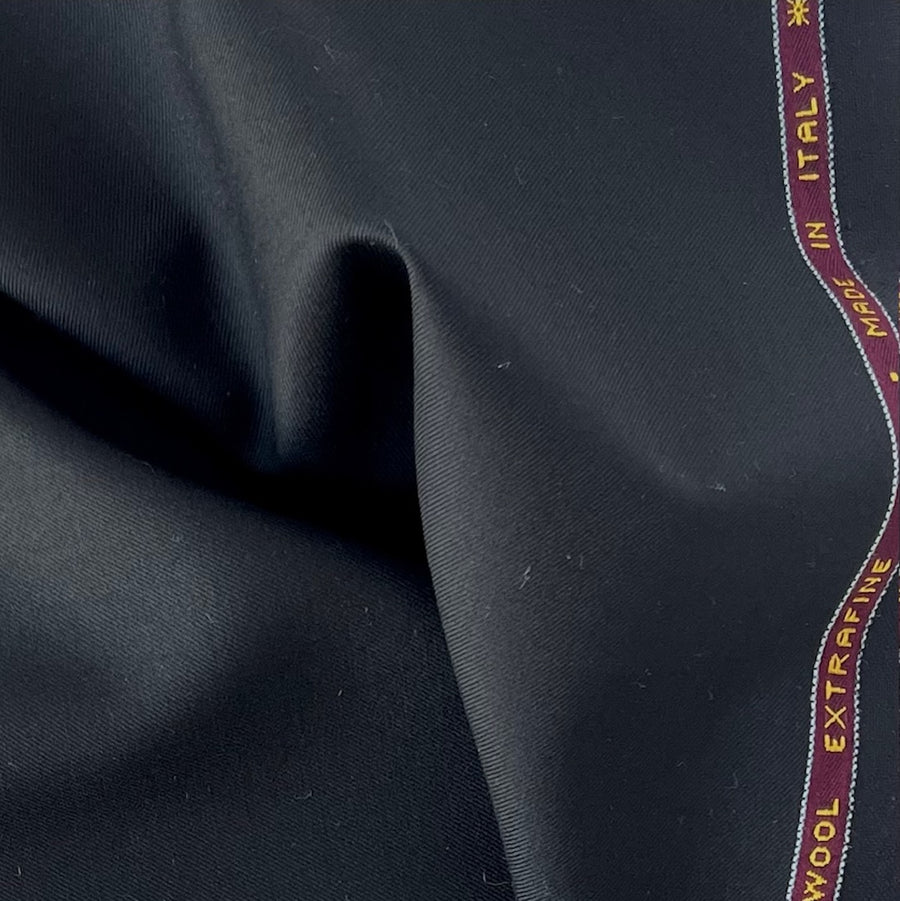 Extrafine, selvedged Super 150s wool suiting in onyx - this smooth, light-weight, high-end wool suiting is tightly-woven and perfect for travel garments, classic tailoring, slacks, or a stand-out suit. Made in Italy. 100% wool. 58" wide.