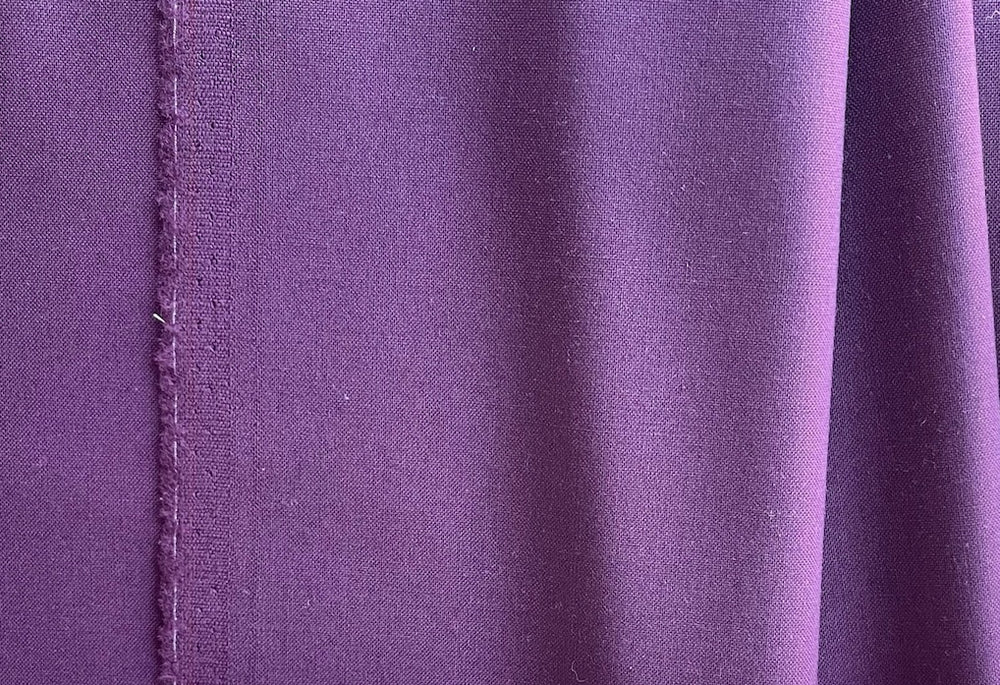 A mid-weight wool suiting in deep royal amethyst - this smooth wool suiting is perfect for accent pieces, jackets, pants, suits, or skirts. Limited yardage . Made in Italy. 100% wool. 60" wide.