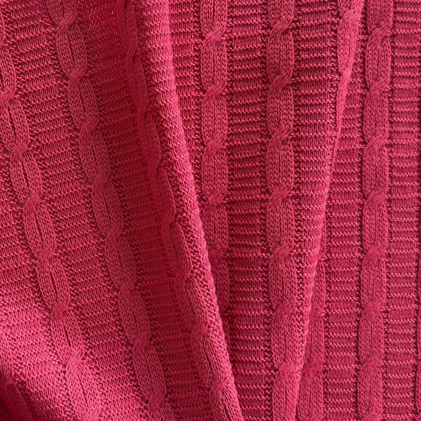 A lovely wool jersey knit in old rose with lengthwise woven cables and 1/2" wide ribbed selvages - this elegant knit is the perfect weight for travel-wear, tunic, hoodies, tops, and tunics. Made in Italy. 100% wool. 42" wide.