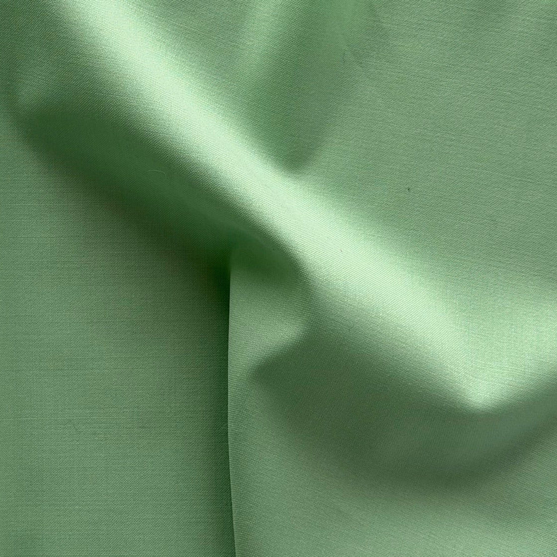 A lighter-weight stretch wool suiting in fresh spearmint green - this smooth, tightly woven woolen is perfect for travel-wear, a skirt, light-weight pants, or an understated dress. Made in Italy. 97% wool and 3% lycra. 52" wide.
