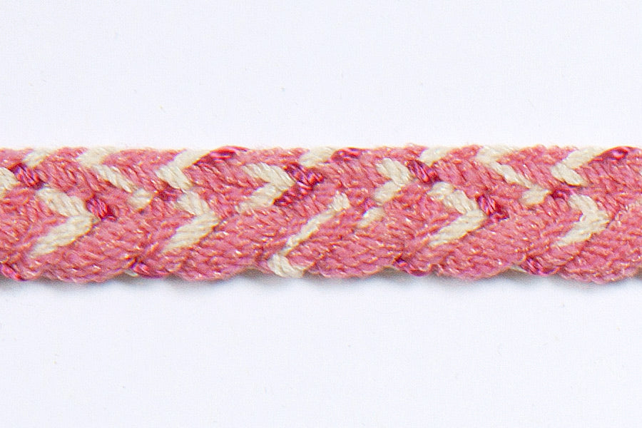 1/2" wide braided trim in carnation pink and winter white. This trim is perfect for sewing haute couture garments such as French designer-inspired jackets - layer your trims for a unique and special look!
