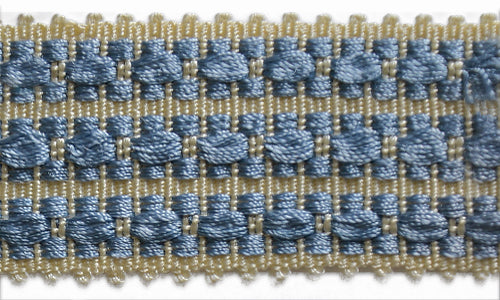 1 3/4" Mock Basketweave Sky Blue & Ivory Woven Trim