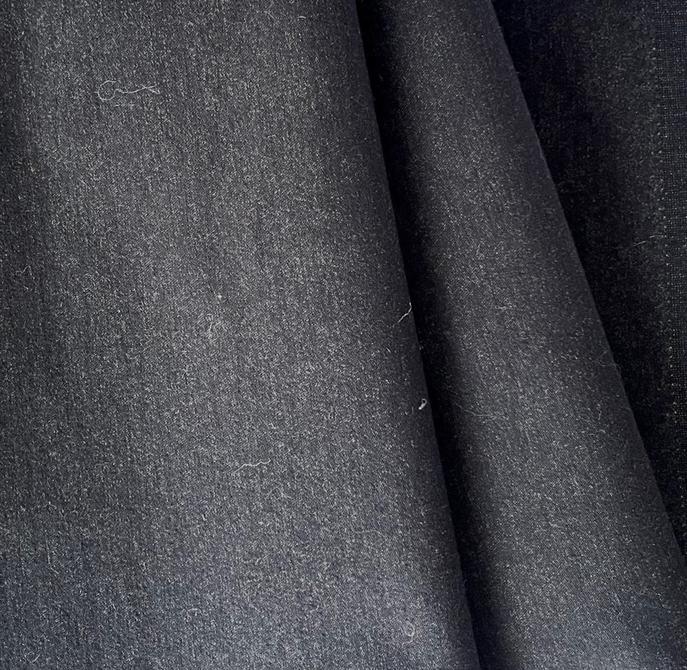A handsome, high quality stretch 11 oz. cotton blend denim twill in classic black - with a touch of lycra and a caramel colored reverse that could be a fabulous design feature such as cuffs, this soft, durable cotton denim is perfect for pants, skirts, shirts, or dresses. Cold water wash. Made in Italy. 90% cotton, 7% poliamide, and 3% lycra. 60"wide.