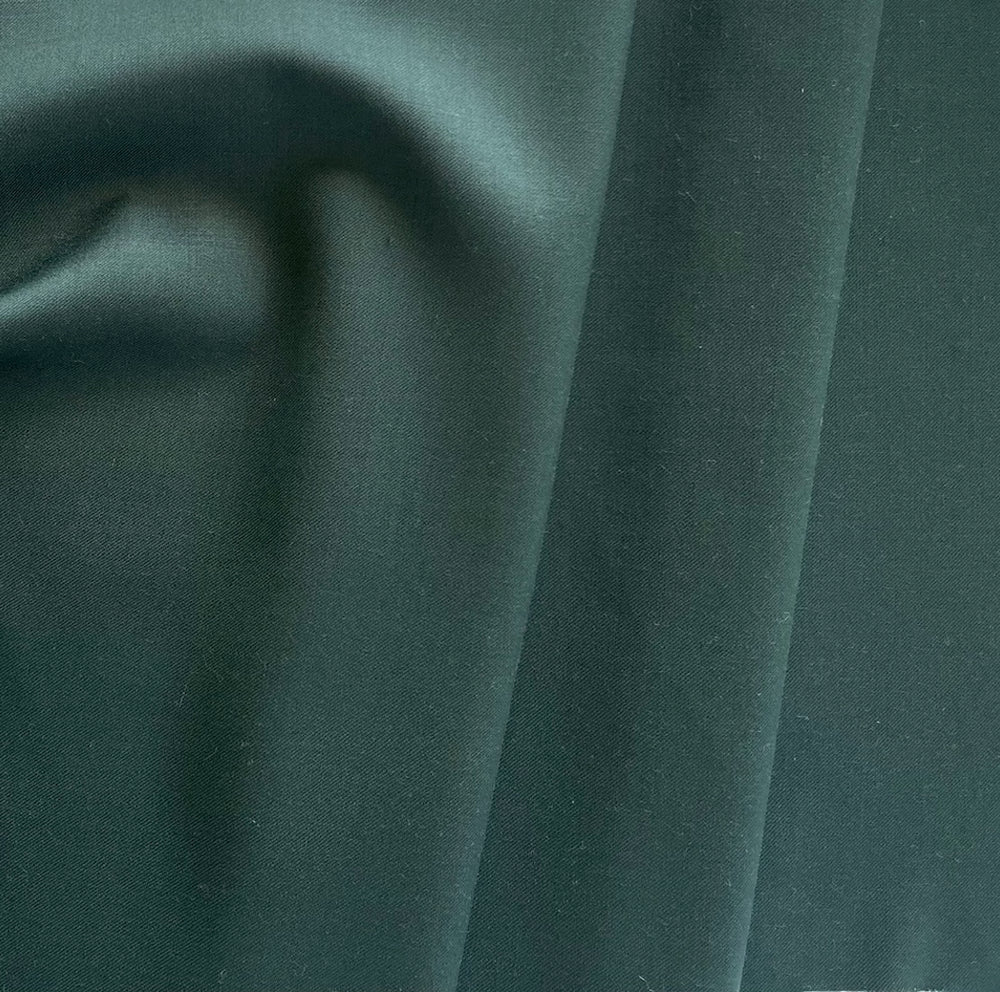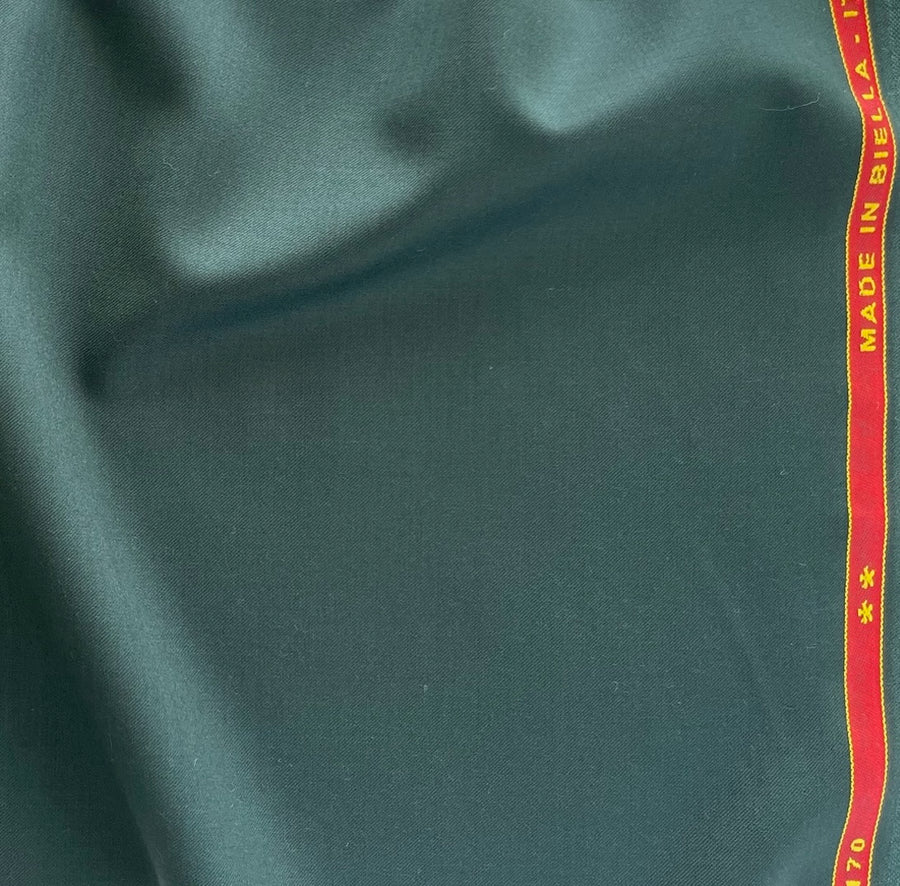 Our finest, selvedged "four seasons" 170s wool twill suiting in rich bottle green - this smooth, light-weight, high-end wool suiting is tightly-woven and perfect for travel garments, classic tailoring, slacks, or a stand-out suit. Made in Biella, Italy by a high-end mill. 100% wool. 60" wide.