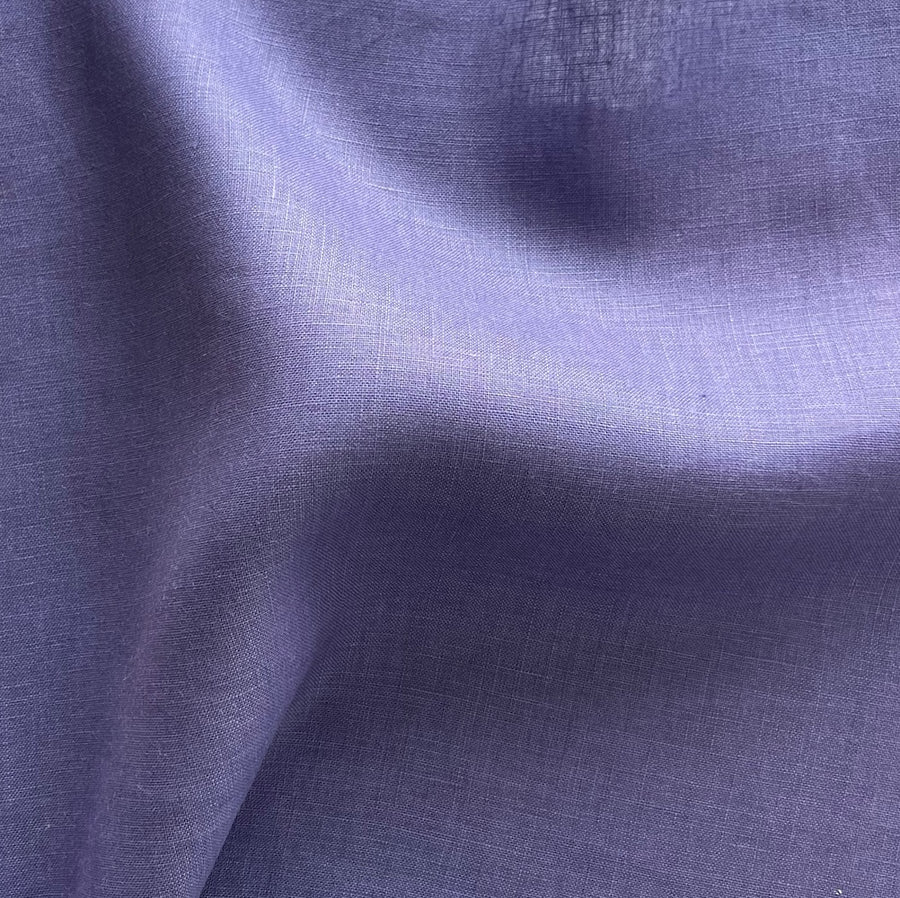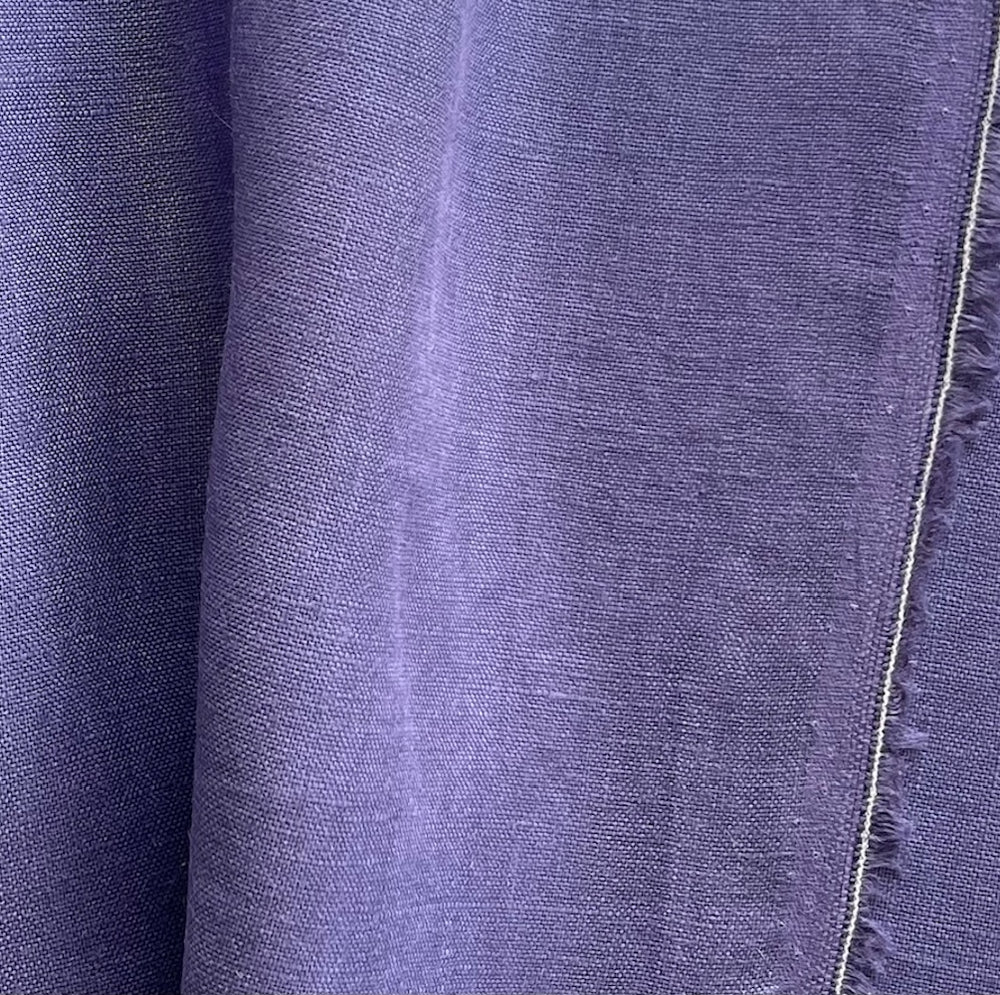 A semi-sheer, lighter-weight linen in Deep Heather - this airy, classic linen is perfect for blouses, dresses, curtains, or drawstring pants. Made in Italy and used by Bottega Veneta. 100% linen. 57" wide.