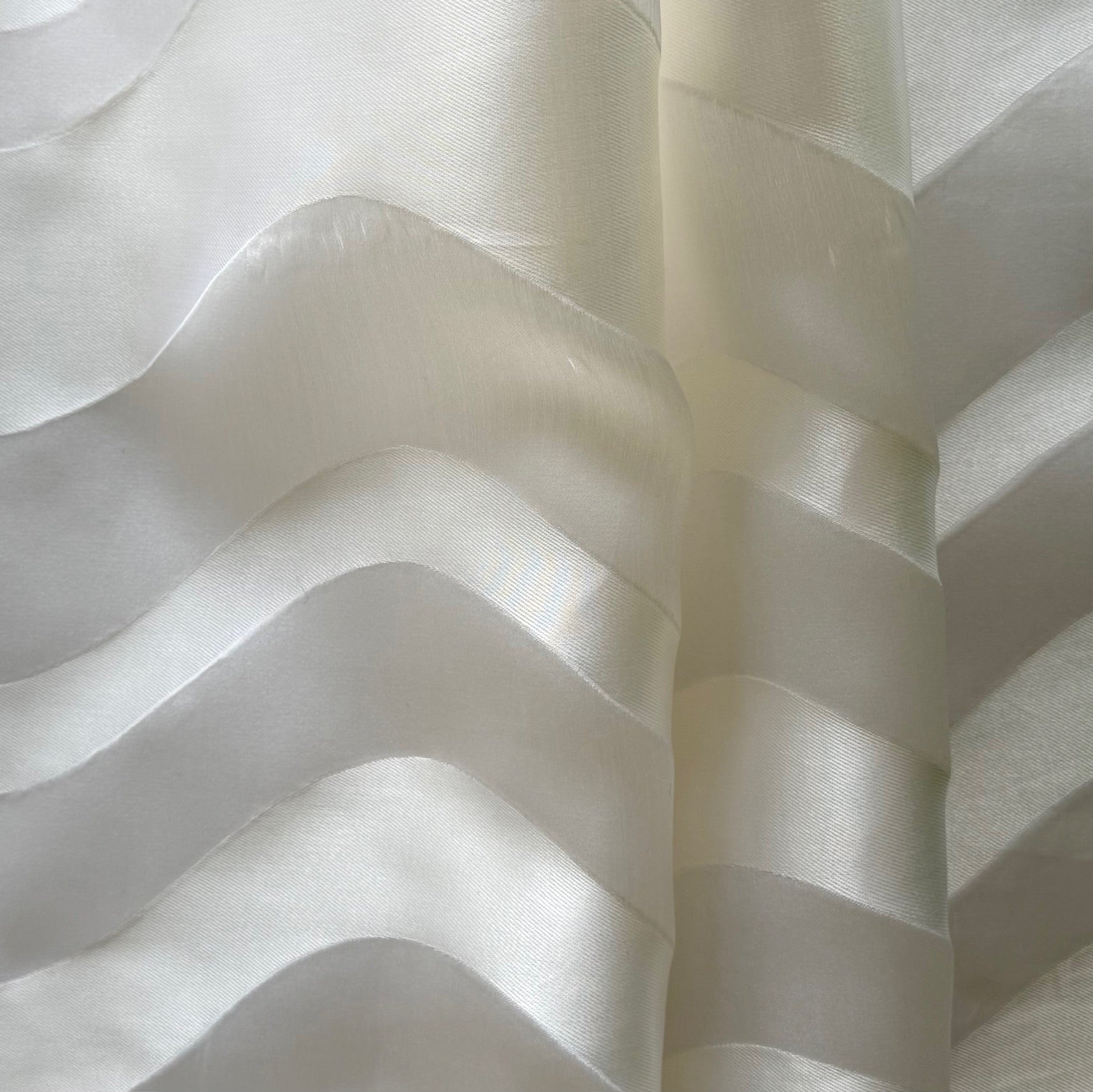 A designer silk peau de soie jacquard brocade in a off-white and with an alternating satin and matte ripple design - this couture-quality, sophisticated silk is perfect for bridal wear, an evening skirt, or a wrap. Made in Italy. 100% silk . 58" wide.