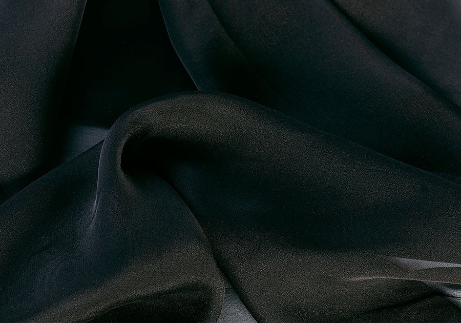 An elegant finest black silk chiffon - great for a wrap or a vintage-style blouse. Made in Italy. 100% silk. 55" wide.