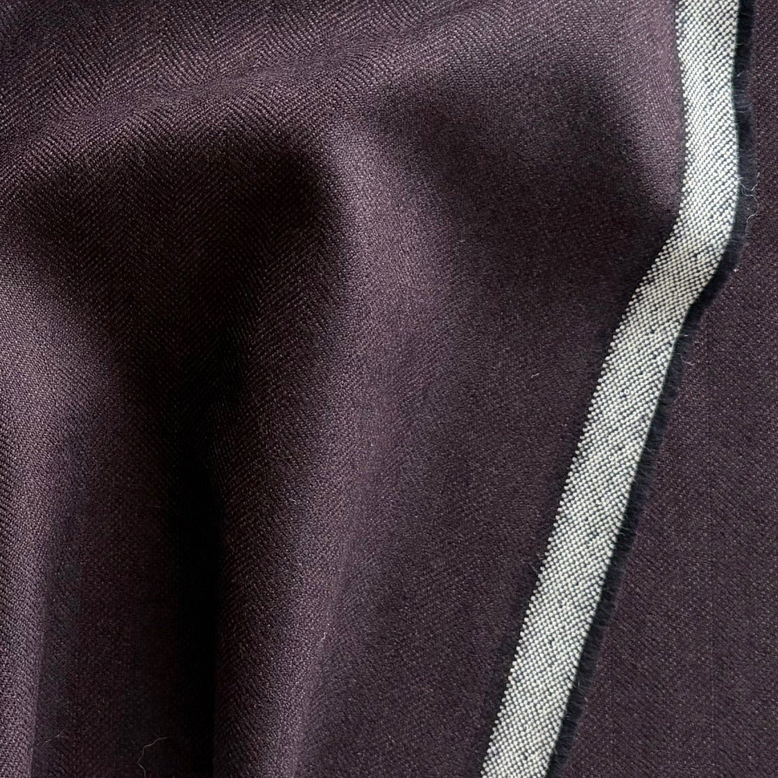 A mid-weight virgin wool tweed in a navy blue and mauve herringbone - this buttery soft, handsome woolen is perfect for travel-wear, pants, or a jacket. Made in Italy by the high-end mill, Guabello. 100% virgin wool. 61" wide.