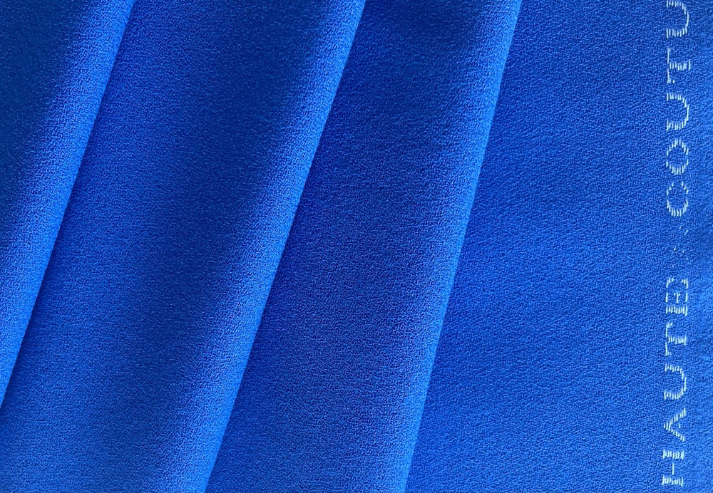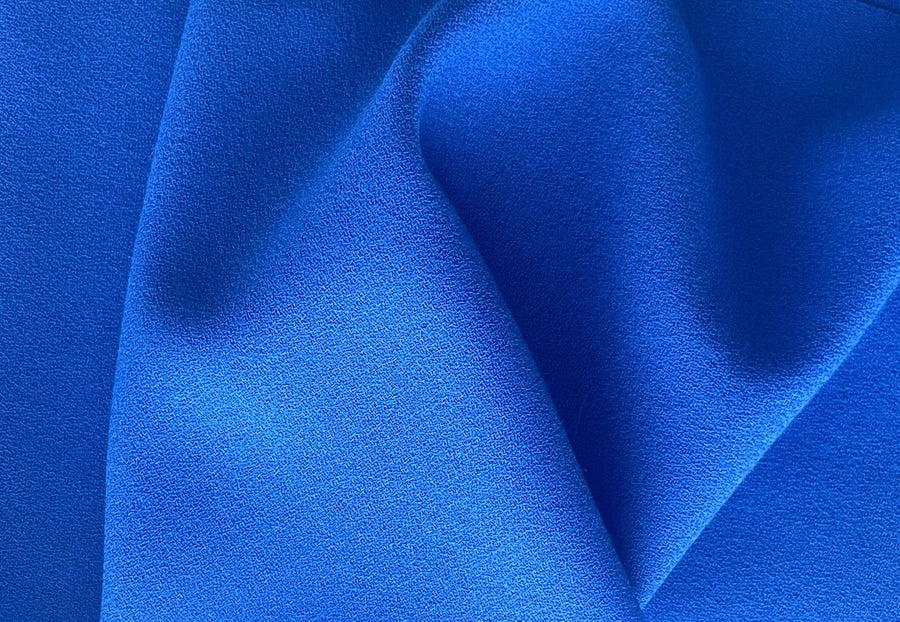 Our favorite selvedged wool crepe with a high twist yarn and in a saturated Malibu cornflower blue - with a classic pebbled texture, soft drape, and year-round wearability, this airy crepe is resistant to static and perfect for casual or light formal wear. Great for suits, jackets, dresses, shirts, slacks, and tops. Made in Italy. 100% wool. 58" wide.