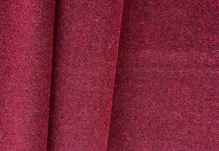 A high-end wool blend in heathered jeweled cranberry - this contemporary wool blend is great for upholstering furniture, drapes, or accent pillows. Made in Italy by a prestigious upholstery mill. 65% wool, 20% nylon, and 15% alpaca. 57" wide.