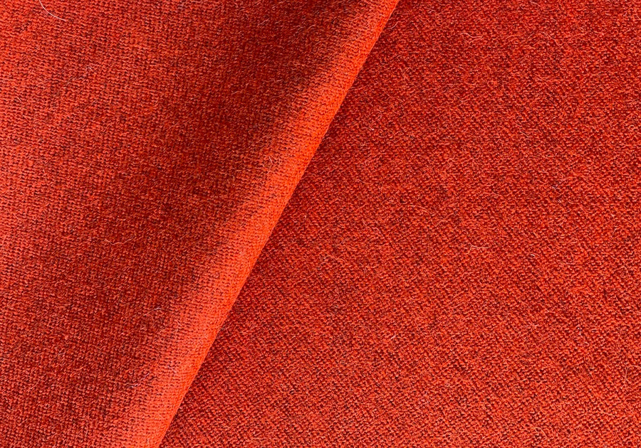 A high-end wool blend in heathered ripe persimmon - this contemporary wool blend is great for upholstering furniture, drapes, or accent pillows. Made in Italy by a prestigious upholstery mill. 65% wool, 20% nylon, and 15% alpaca. 57" wide.