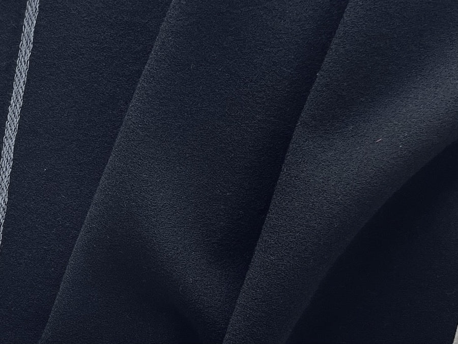 Our favorite selvedged wool crepe with a high twist yarn and in a deep obsidian black - with a classic pebbled texture, soft drape, and year-round wearability, this airy crepe is resistant to static and perfect for casual or light formal wear. Great for suits, jackets, dresses, shirts, slacks, and tops. Made in Italy. 100% wool. 58" wide.