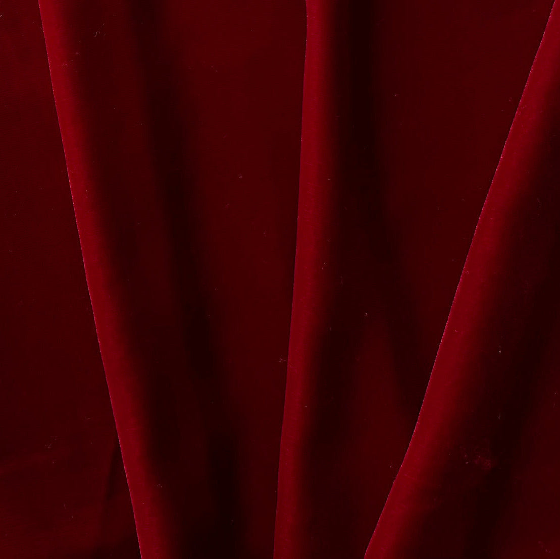 An elegant rayon blend velvet in vibrant holiday red -this supple, drapey velvet is perfect for jackets, special occasion wear, or romantic mid-length dresses. Made in China. Rayon and acrylic. 45" wide.