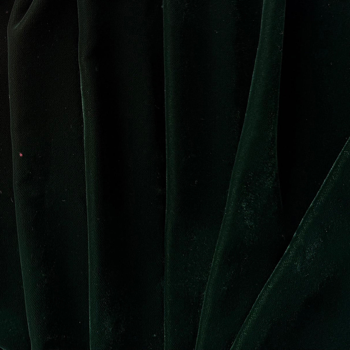 An elegant rayon blend velvet in deep hunter green - this supple, drapey velvet is perfect for jackets, special occasion wear, the holidays, or romantic mid-length dresses. Made in China. Rayon and acrylic. 54" wide.