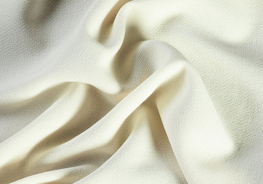 A wool double-crepe in warm ivory. Pliable and heavy, this wool crepe is perfect for flat-front slacks or an elegant suit. Made in Italy. 100% wool. 60" wide.