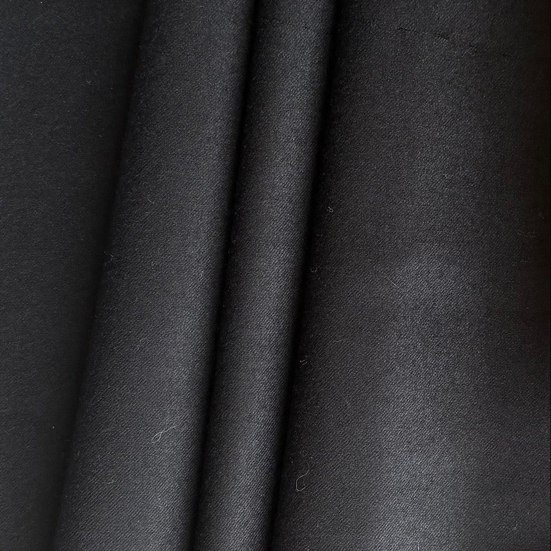 A selvedged Super 120s wool flannel suiting in classic deep navy - this smooth, high-end wool suiting is tightly-woven and has a slight natural sheen, perfect for travel garments, classic tailoring, slacks, or a stand-out suit. Made in England by Kilton. 100% wool. 62" wide.