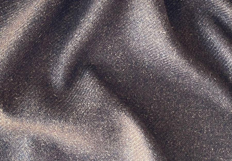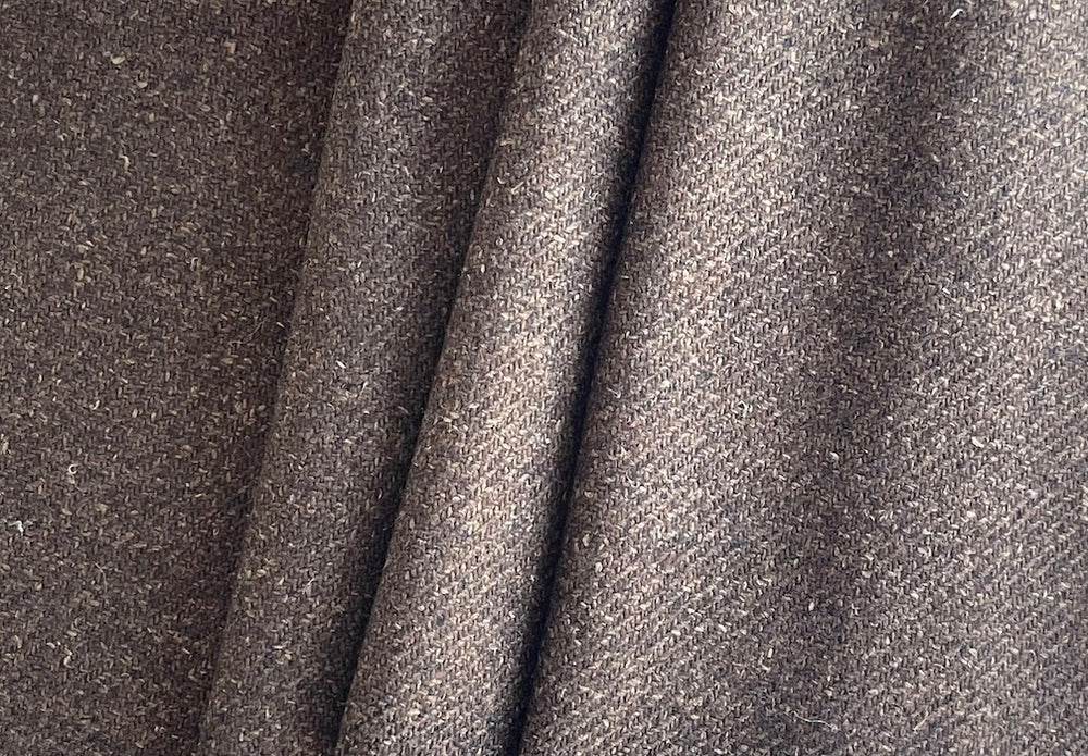 A luxurious wool and silk blend tweed jacketing in rich shades of walnut and hickory - this soft, mid-weight tweed is perfect for a handsome jacket, a robe, or a wrap. Made by the high-end, Italian mill Lanificio di Pray. 72% wool, 24% silk, and 4% cashmere. 59" wide.