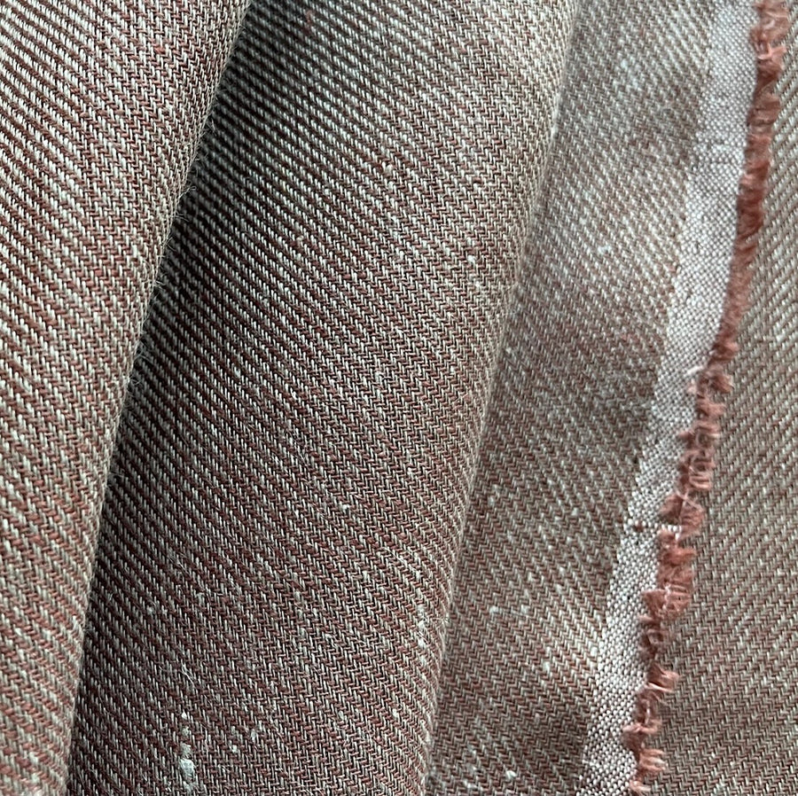 A lighter-weight linen twill in a handsome rust and white cross-weave - this soft, linen is perfect for blouses, long tiered dresses, or wide-legged pants. Made in Poland. 100% linen. 58" wide.