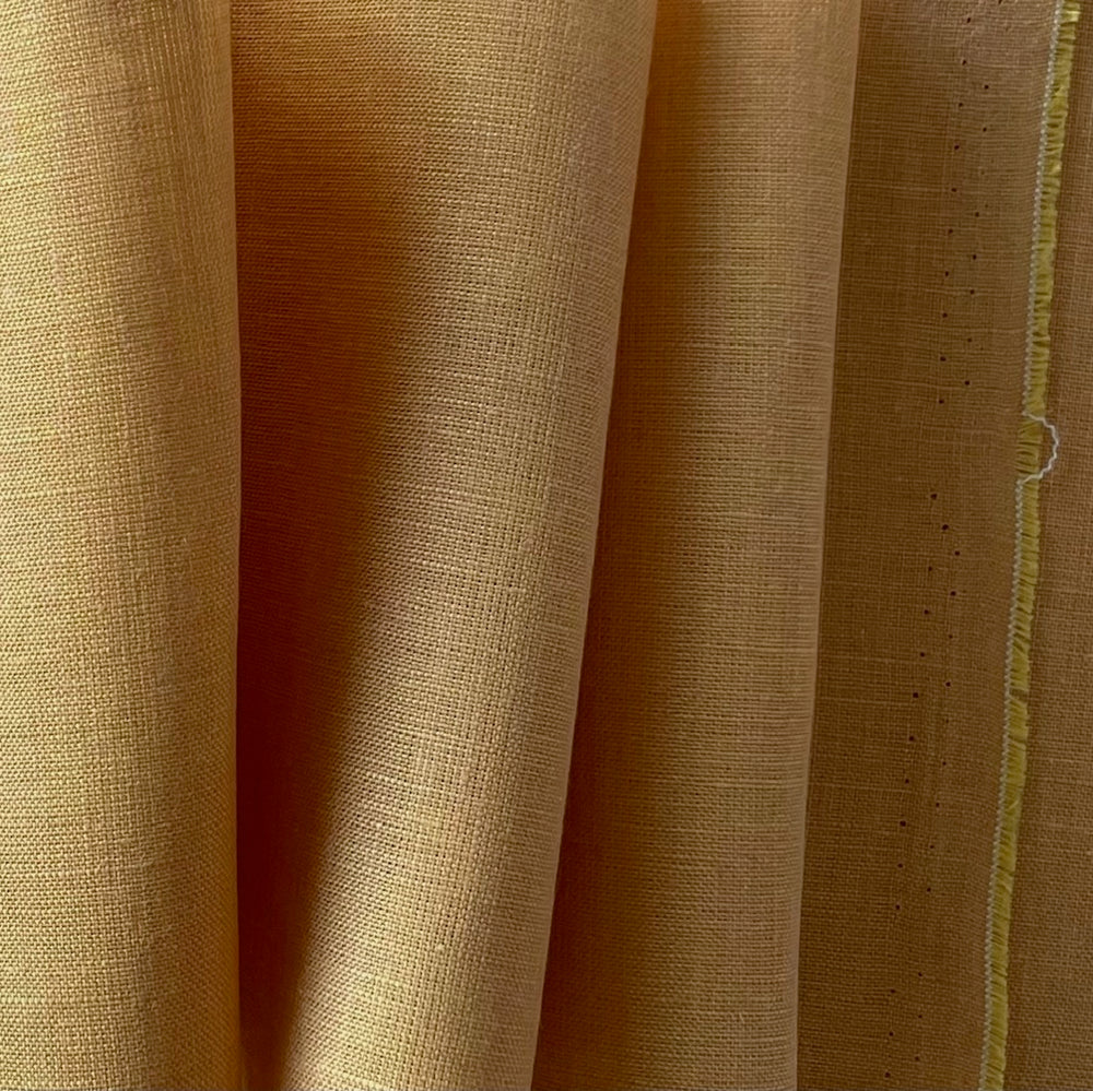 A mid-weight linen in a juicy two-tone weave in tangerine and yellow - this perky linen is perfect for blouses, long tiered dresses, shirts, table linens, or cropped pants. Made in Poland. 100% linen. 59" wide.