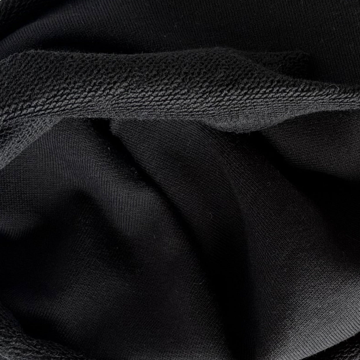 A mid-weight cotton French terry knit in onyx black - smooth on the front and with a terry back, this soft cotton French terry is the perfect weight for athleisure wear, travel-wear, hoodies, comfortable tops, or joggers. Made in Italy. 100% cotton. 68" extra wide.