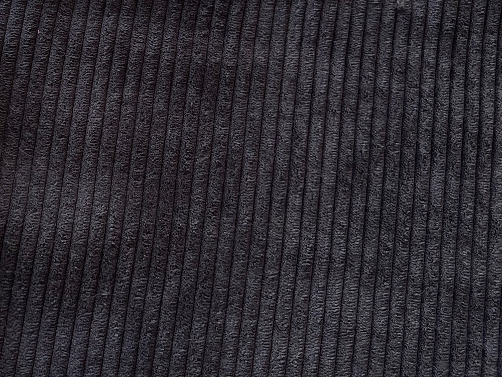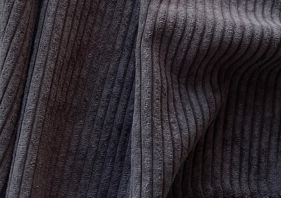 A mid-weight, wide-wale polyester corduroy in storm cloud black - this beautifully soft corduroy is perfect for lounge wear, tops, or fluid coats. Iron on the wrong side of the fabric and with the nap, or verso del pelo. A needle board can be utilized. Made in Italy. 90% polyester and 10% nylon. 65" wide.