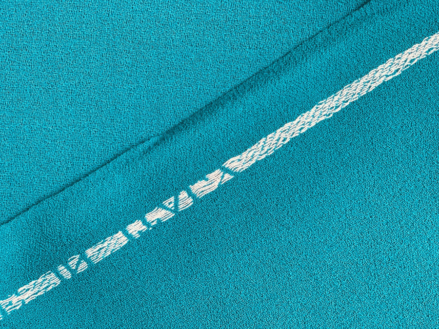 Our finest selvedged wool crepe in saturated, cool swimming pool blue. Pliable and soft, this wool is perfect for flat-front slacks or an elegant suit. Limited yardage available Made in Italy. 100% wool. 58" wide.